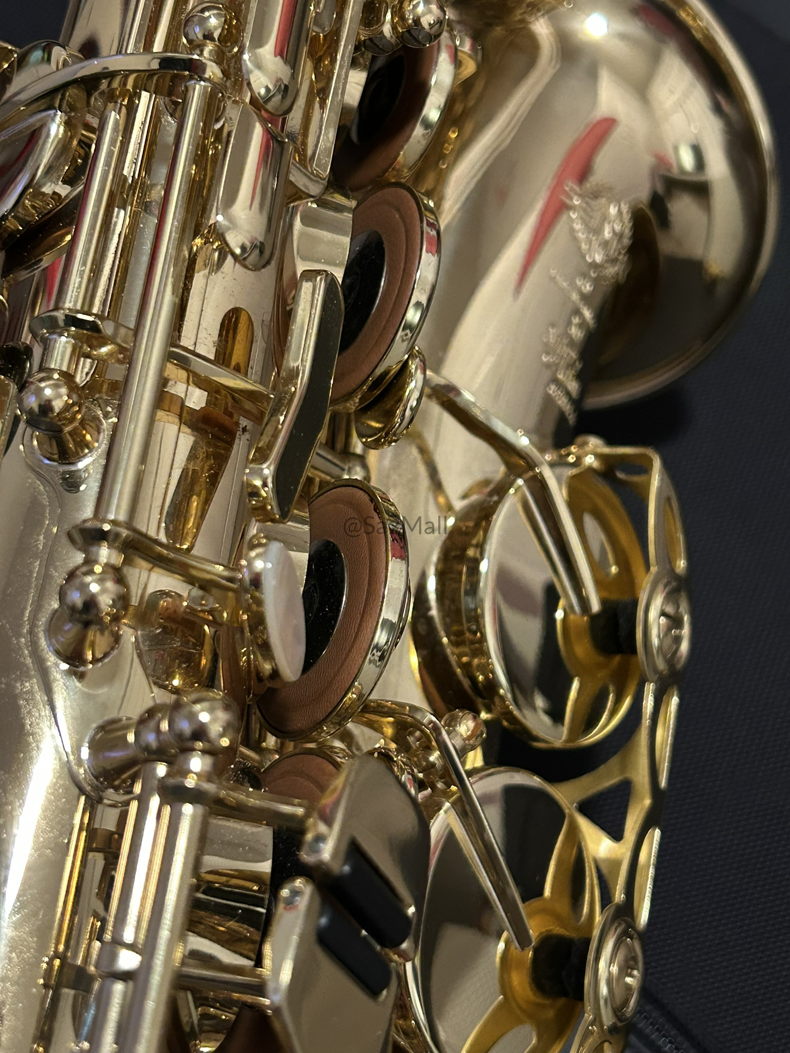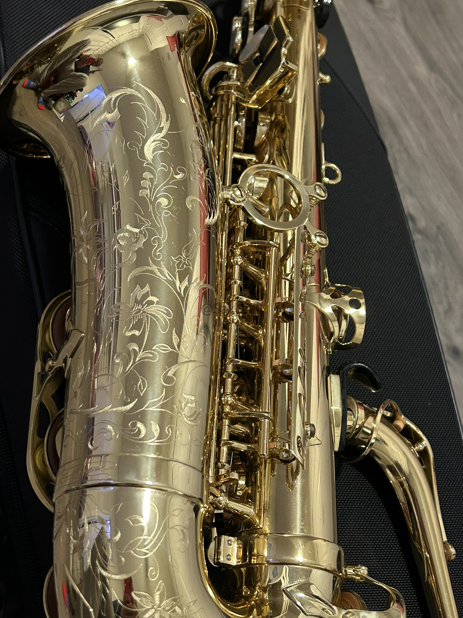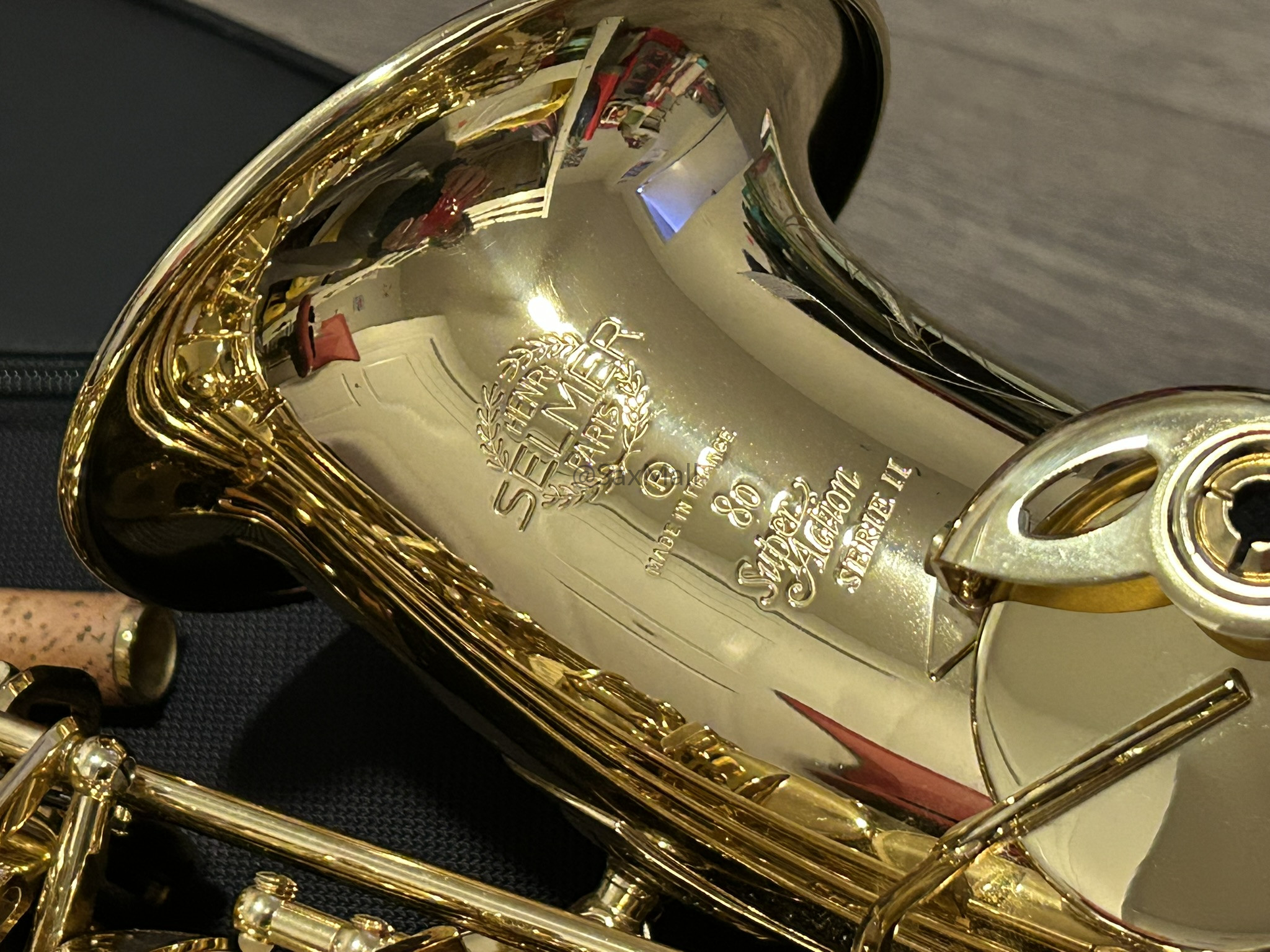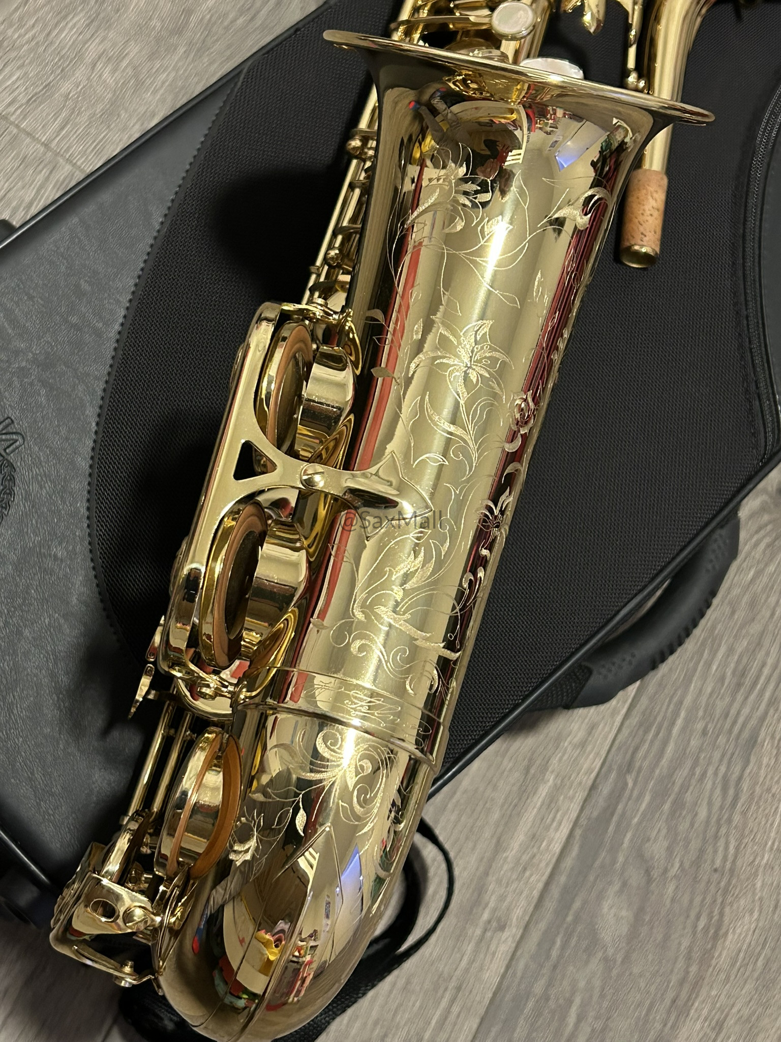• Gorgeous hand-engraved floral bell and bow with intricate, delicate patterns and the Henri Selmer Paris signature—truly elegant and collectible.